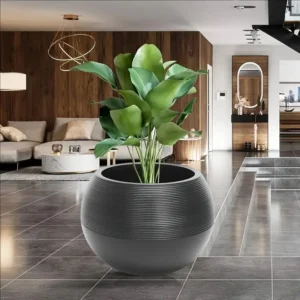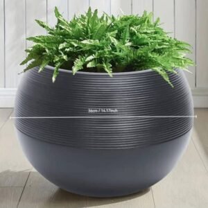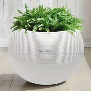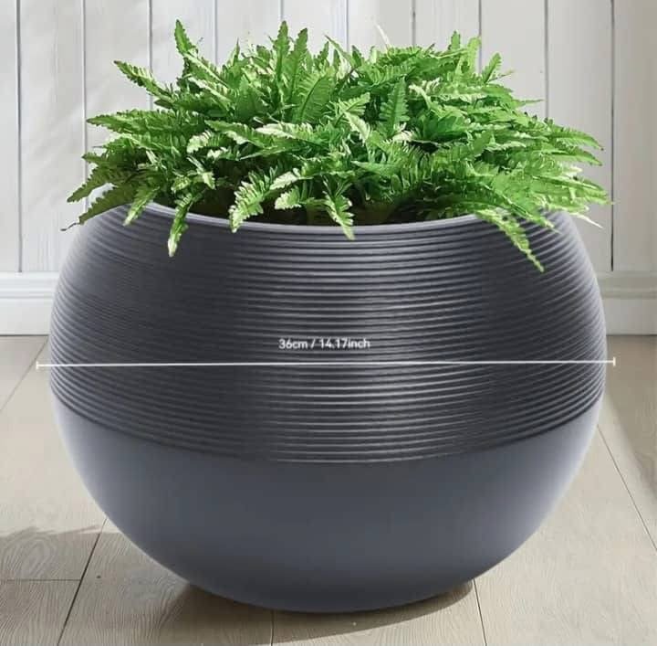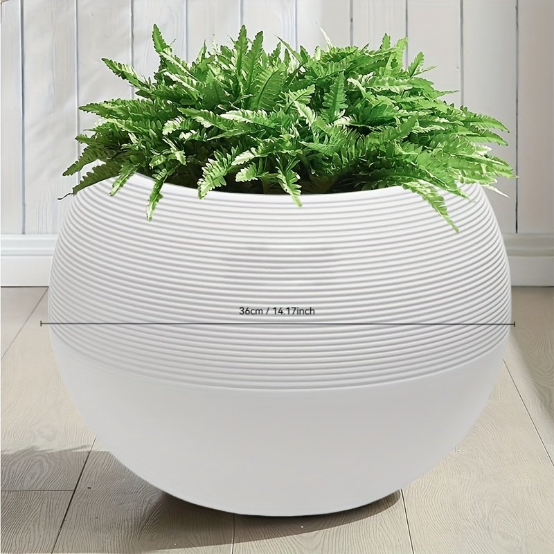 Sublimez votre décoration avec ce cache-pot sculptural au design minimaliste. Sa forme sphérique parfaite et sa texture finement rainurée en font une pièce maîtresse pour tout intérieur moderne ou terrasse élégante