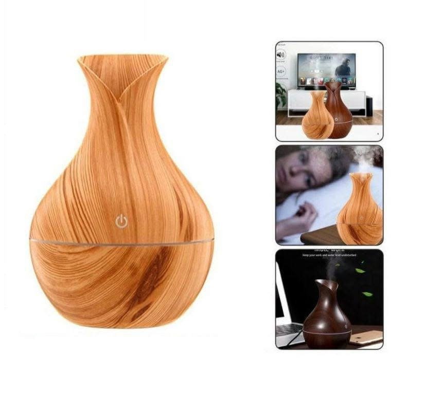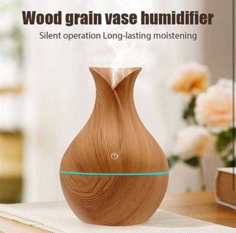 diffuseur d’arômes à ultrasons et humidificateur d’air au design en forme de vase en bois.