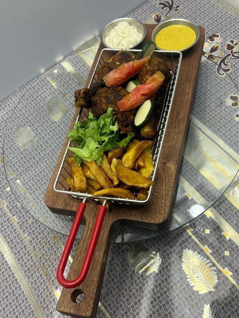 Présenté dans un panier métallique moderne, ce plateau est idéal pour un repas convivial et mémorable.