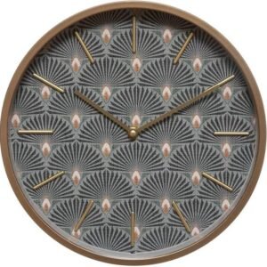 Découvrez l’horloge murale Lizy, une pièce décorative qui allie élégance et modernité. Son cadran, orné d’un motif graphique inspiré de l’Art Déco, présente des éventails stylisés . Les index et les aiguilles dorés apportent une touche de sophistication et de lisibilité.