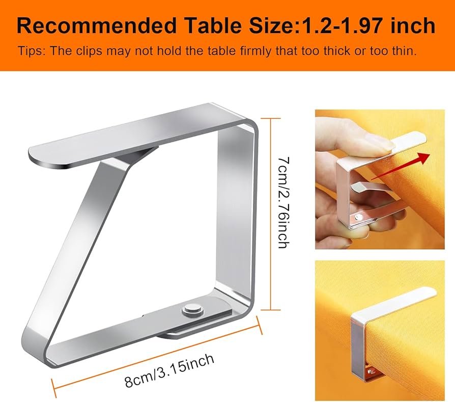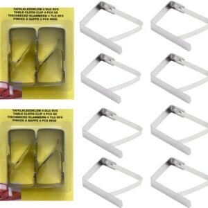 Les lots de pinces à nappe en acier inoxydable sont conçues pour maintenir fermement une nappe sur une table, ce qui est particulièrement utile pour les repas en extérieur afin d’éviter qu’elle ne s’envole.