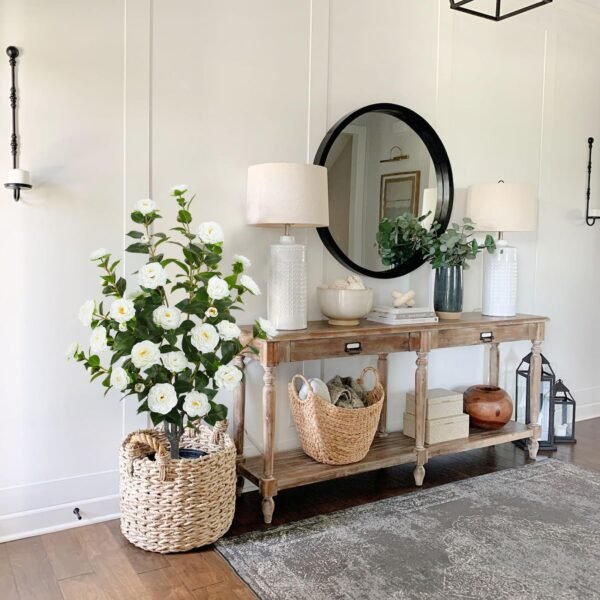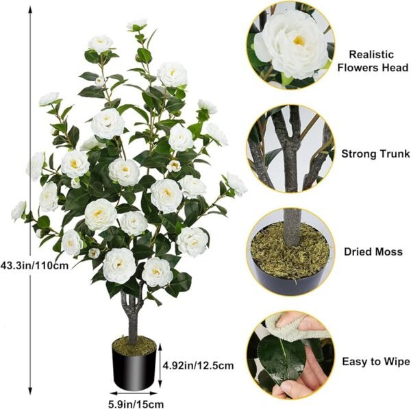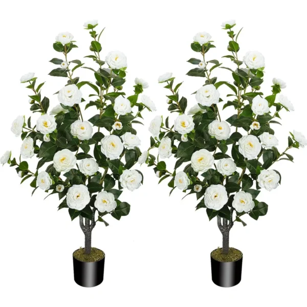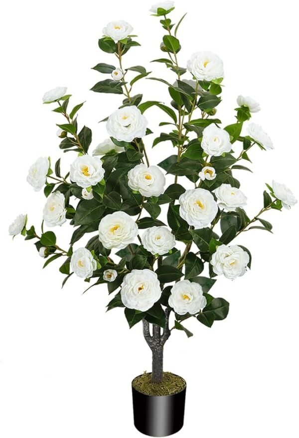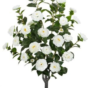 - Ce camélia artificiel est une plante décorative qui imite l’apparence d’un camélia naturel, avec des fleurs blanches et un feuillage vert.