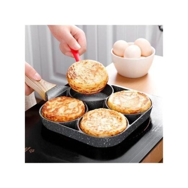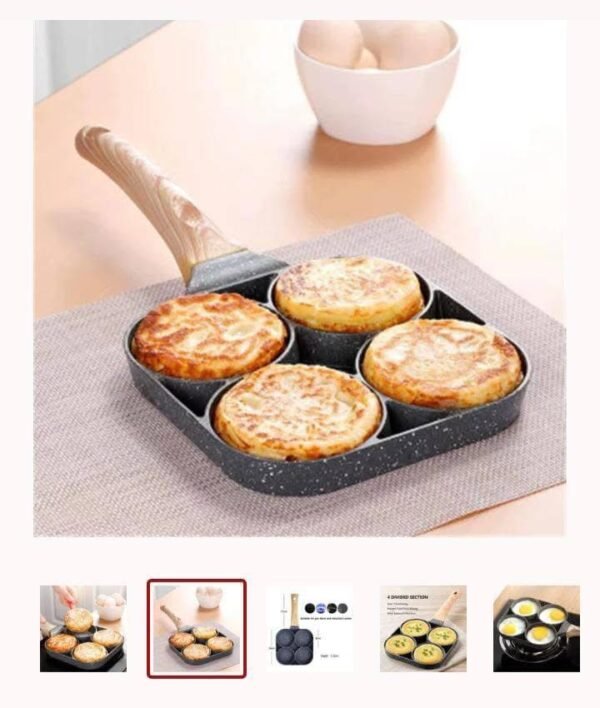 Cela est une poêle à frire antiadhésive à quatre compartiments, conçue pour cuire plusieurs aliments simultanément.