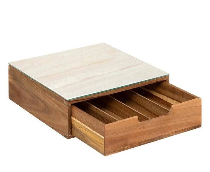 - Le porte-capsules est fabriqué en bois d’acacia.