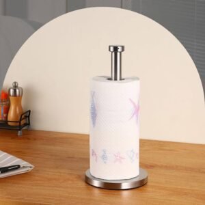 Ce porte-rouleau d’essuie-tout est un accessoire de cuisine à poser, conçu pour maintenir un rouleau de papier à portée de main sur un plan de travail.