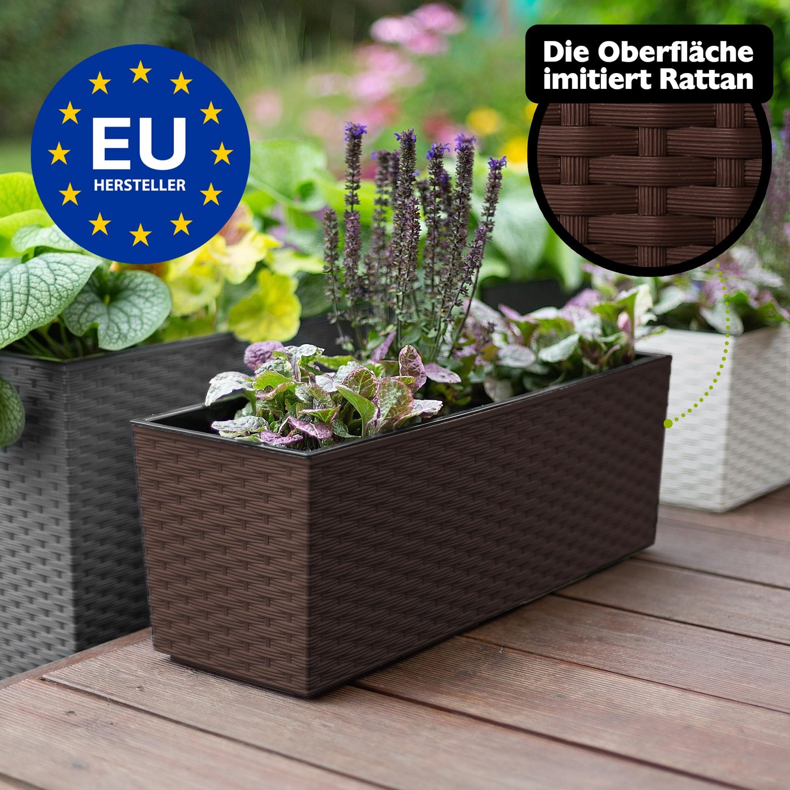Cette jardinière rectangulaire de qualité supérieure, avec son aspect rotin tressé élégant, est un choix idéal pour sublimer vos espaces extérieurs.