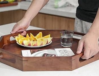 Design Élégant et Naturel : Ce plateau de service octogonal est fabriqué à partir de bambou naturel de haute qualité, offrant une esthétique chaleureuse et intemporelle qui s’intègre parfaitement à tout type de décoration intérieure